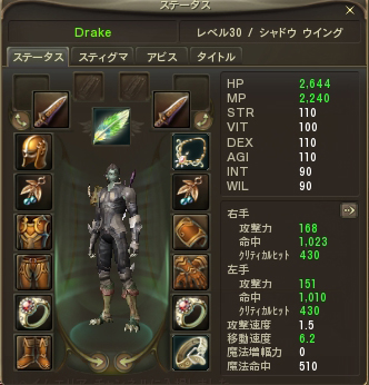 左右ダガー装備でステータスがこんな感じ。